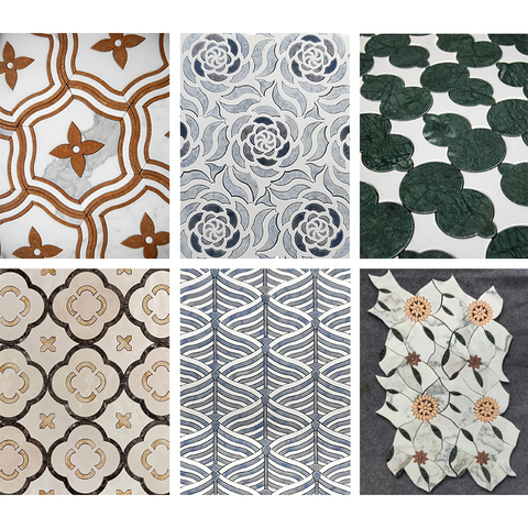 प्राकृतिक संगमरमर मोज़ेक फर्श और दीवार टाइल वाटरजेट फूल पत्थर डिजाइन बाथरूम बैकस्प्लेश रसोई होटल और पूल अनुप्रयोगों