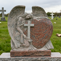 Multicolor Red Granite Modern Tombstones and Monuments with Angel & Heart Shape Headstone Design for Cemetery